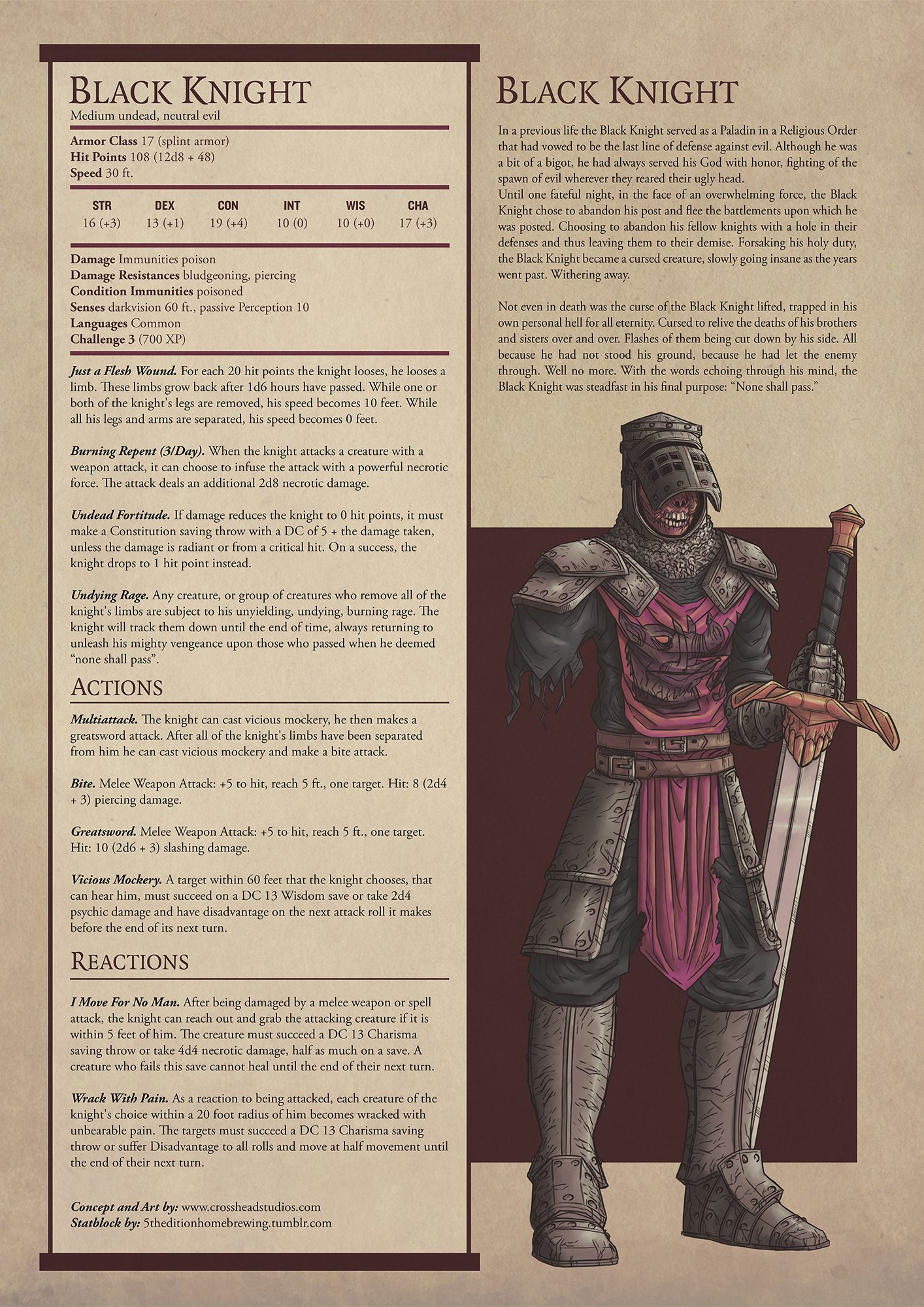 Crosshead On Twitter I Redesigned Monty Python S Black Knight As A Undead Paladin With Both My Custom Artwork And A Custom Background Whose Next Wizards Dnd Dnd Dungeonsanddragons Undead Monster Tabletop Rpg Https T Co Hxcxlgoa37